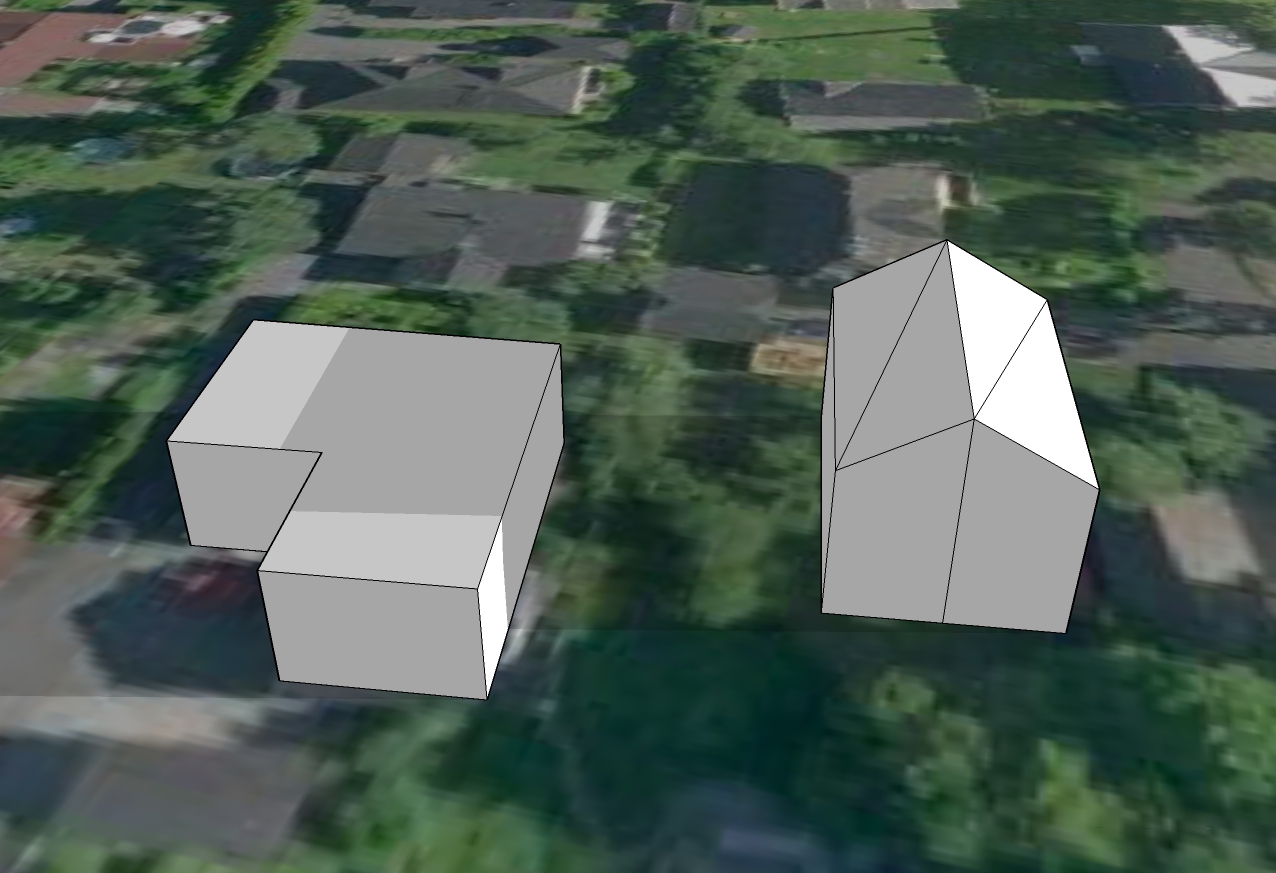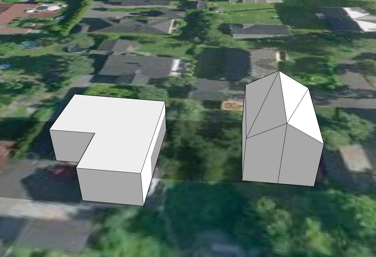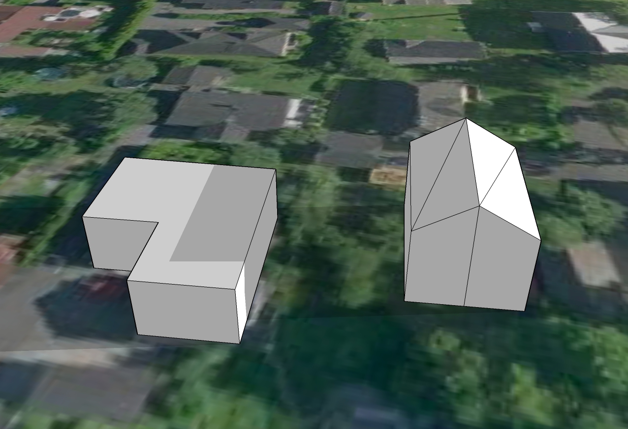 Derfor en forklaring isteden. Formen på huset vårt er veldig veldig forenklet. Vi har ikke flatt tak, slik at "taket" her er ca gesimghøyde. I tillegg er det jo en terrasse foran huset og dermed er husveggen egentlig litt over tre meter innenfor "veggen". Den korte delen er garasjen. Det hele er vesentlig bedre synlig i skyggevideoene, så at det har hele tiden vært mulig å tolke helheten riktig.